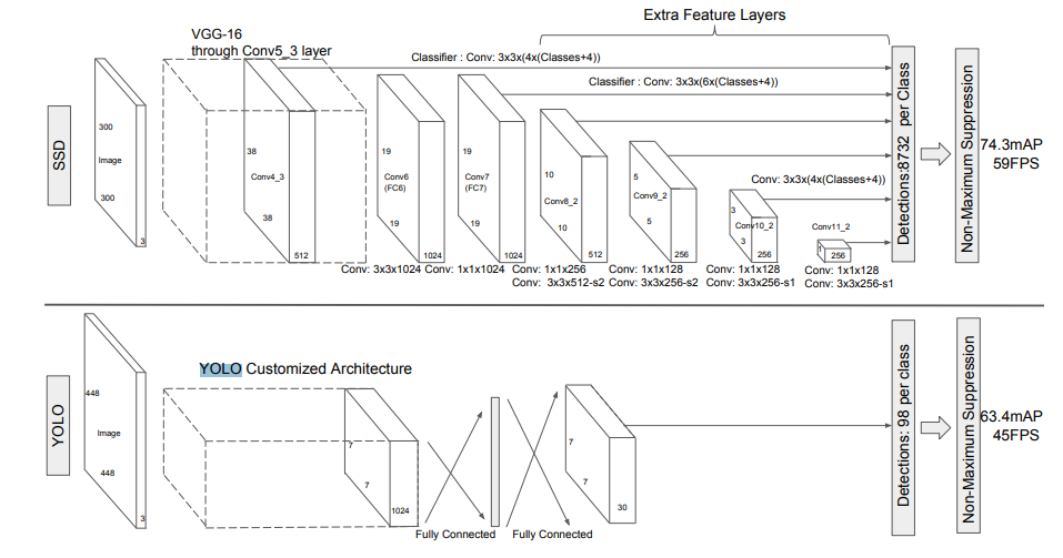 Single Shot multibox Detector(SSD)는 이러한 단점들을 보완하기 위해 모든 피쳐 맵에 대해 OD를 수행합니다.