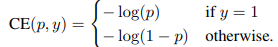 Focal loss는 논문의 제목처럼 RetinaNet에서 사용되는 핵심적인 아이디어입니다. 이진 분류 문제에서 사용했던 손실함수를 우선적으로 활용합니다. (아래 식 참고)