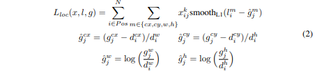 손실함수는 Localization loss와 Confidence loss의 합으로 계산합니다. Localization은 smooth L1, Confidence는 Softmax로 계산합니다.