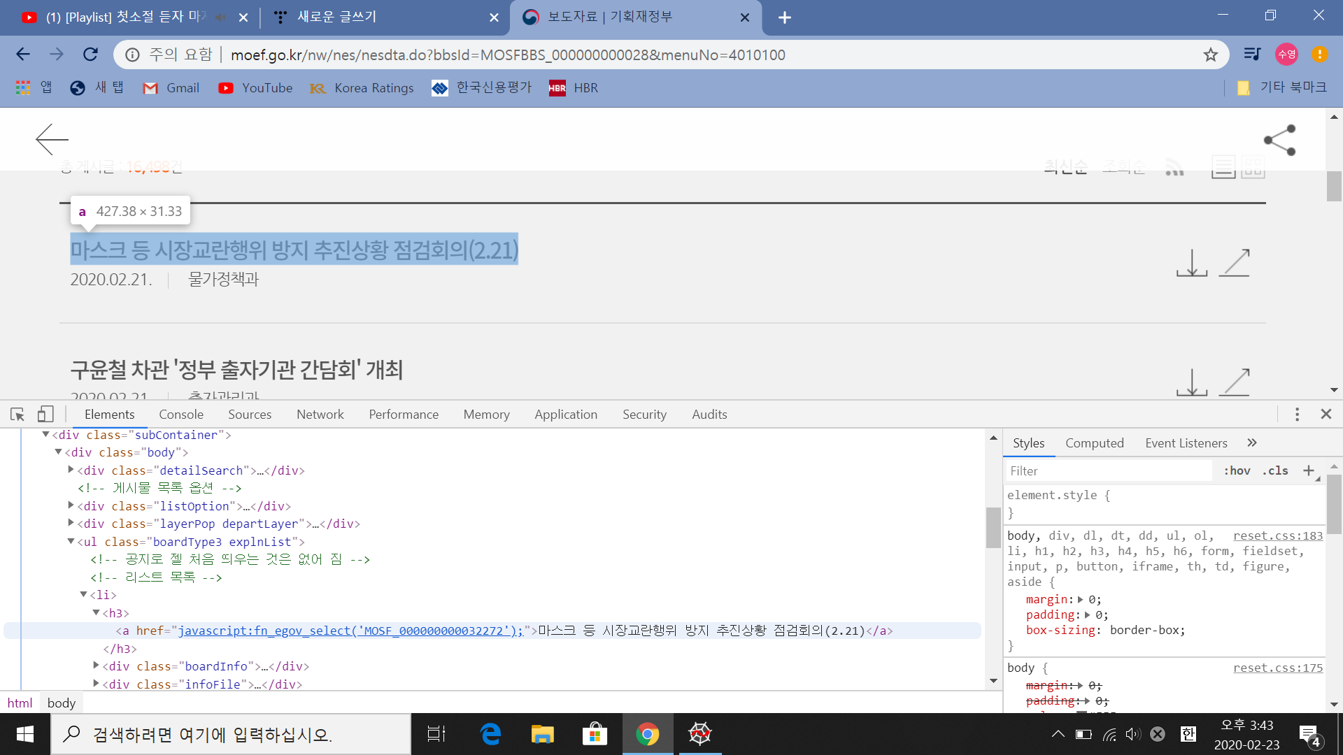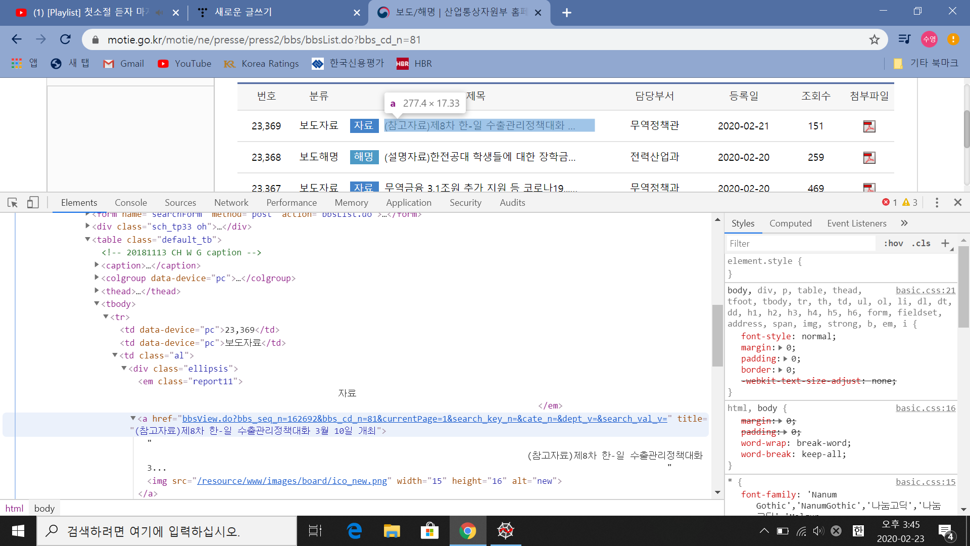 2020.02.23 - [Python/Web Crawling] - 파이썬으로 정부 보도자료 크롤링 하기 (Web crawling)